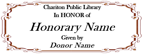 This donation is in HONOR of: Required This donation is presented by: Required The plate placed in this item should read: Please notify: What format would you like to donate? Adult Book, Teen Book, Children's Book, Fiction, Nonfiction, Picturebook? Author(s) Genre(s) Subject(s) Name of Donor Required Donor email Required Donor Phone Number Required Donor Address . Also send notification to me. Submit